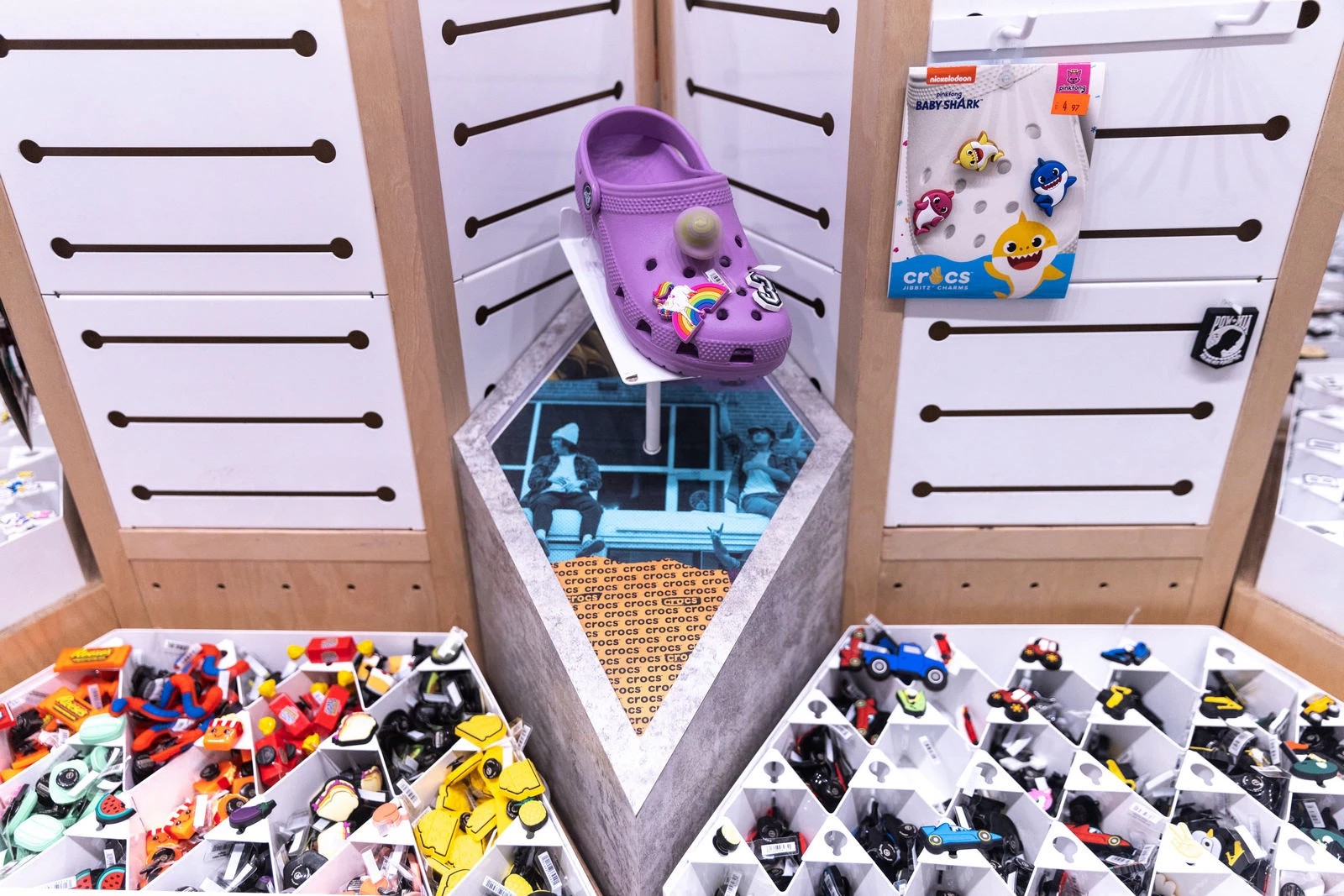 Crocs კიდევ უფრო მიმზიდველი რომ ყოფილიყო, კომპანიამ 10 მილიონი დოლარი გადაიხადა Jibbitz-ის ბრენდის შესაძენად, რომელიც ამზადებს "Jibbits" - დეკორაციებს, რომლებიც ჩასმულია ფეხსაცმლის ნახვრეტებში. ჯიბიცი 2005 წელს გამოჩნდა და 2006 წლის აგვისტოსთვის და 6 მილიონზე მეტი ჯიბიტი 2,2 მილიონ დოლარად გაიყიდა. კიდევ 4 თვის შემდეგ Crocs-მა იყიდა.