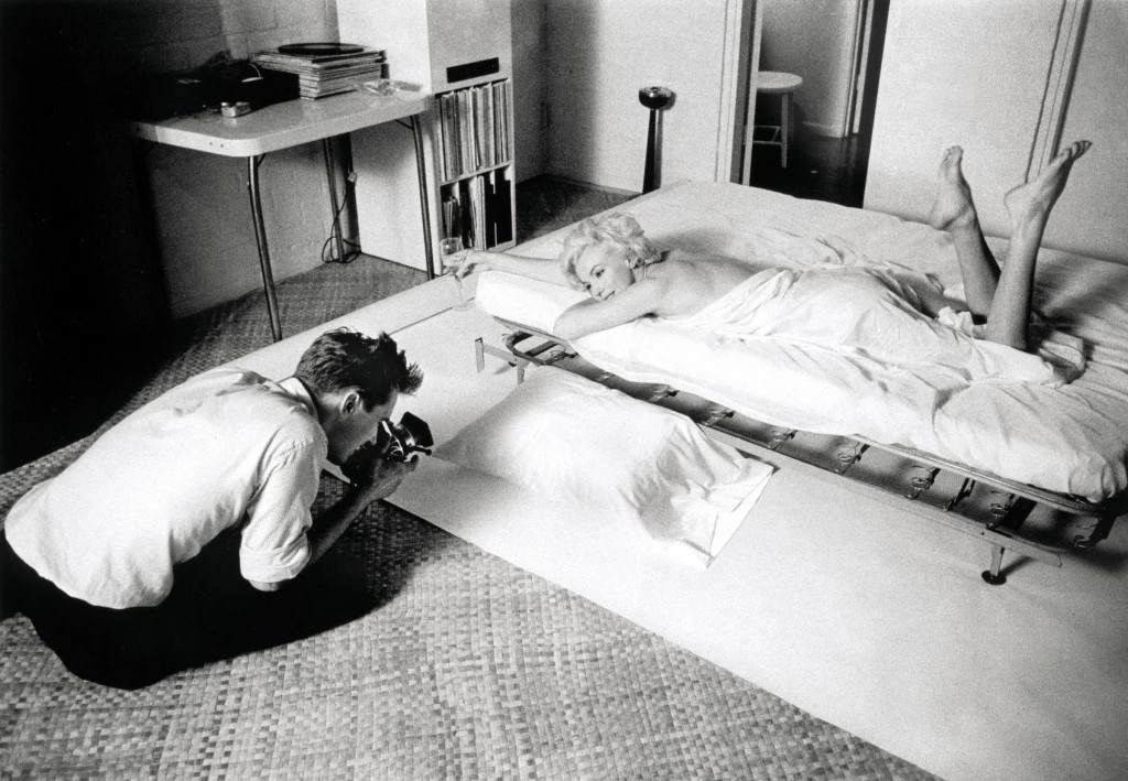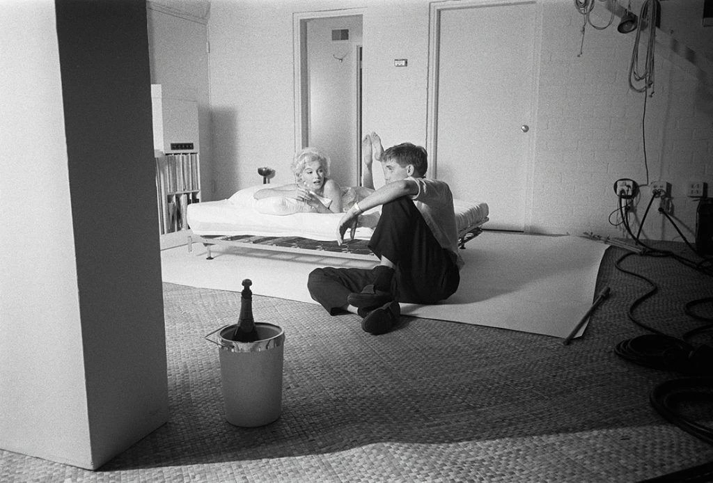 „პირველად, როცა მერილინს შევხვდი გადაღებებზე სასაუბროდ, მე და ჩემი კოლეგები მივედით მის სახლში დოჰენი დრაივზე - ზუსტად იმ კიდეზე, სადაც ბევერლი ჰილსი და ჰოლივუდი ერთმანეთს უკავშირდებიან. თავიდან ის უფრო მეზობელ გოგოს ჰგავდა და არ ჩანდა დიდი სუპერვარსკვლავი. მინდოდა მისთვის სურათები გადამეღო, მაგრამ ჩემი მორცხვი კანადური გზით, არ ვიცოდი ეს როგორ მეთქვა. საბოლოოდ მერილინმა თქვა: „მე ვიცი, რა გვჭირდება. ჩვენ გვჭირდება საწოლი და ჩვენ გვჭირდება თეთრი აბრეშუმის თეთრეული - ისინი უნდა იყოს აბრეშუმის. ფრენკ სინატრას ჩანაწერები და შამპანური Dom Pérignon.“,- იხსენებს ფოტოგრაფი.
