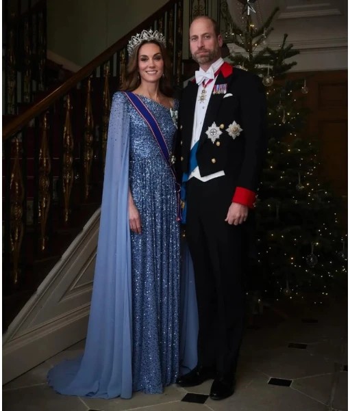 43 წლის ქეით მიდლტონი ბანკეტზე ბრჭყვიალა კაბითა და „ჯენი პეკჰამის“ მოსასხამით გამოჩნდა, თუმცა ყველაზე დიდი ყურადღება დედოფალ ვიქტორიას კოლექციიდან იშვიათმა დიადემამ მიიპყრო.