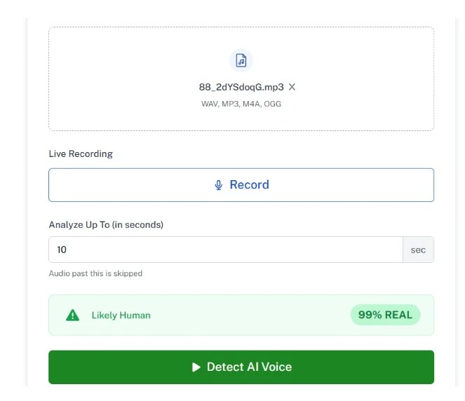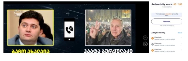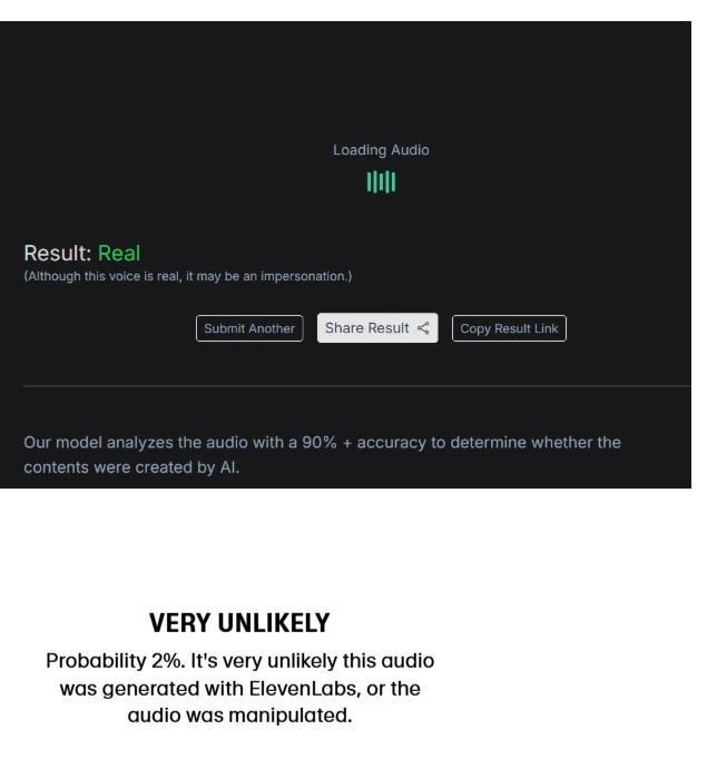 ყველას დანარჩენ პლატფორმაზე შემოწმებისას, დაახლოებით ერთნაირი შედეგი მივიღეთ და 95-100%-ით მიიჩნევენ რომ ჩანაწერი ავთენტიკურია