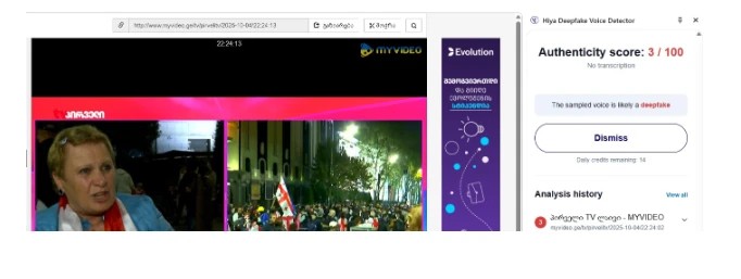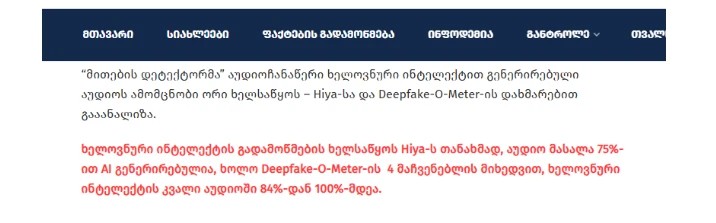 თუ დავუჯერებთ Hiya-ს “ტვ პირველის” ლაივში გასული ხმა 97%-ით ყალბია და არის ე.წ deepfake