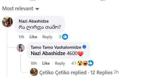 თამოს უწერენ თუ რა ღირდა ნაძვის ხე, რაზეც ის პასუხობს, რომ 4 600 ლარი გადაიხადა.
