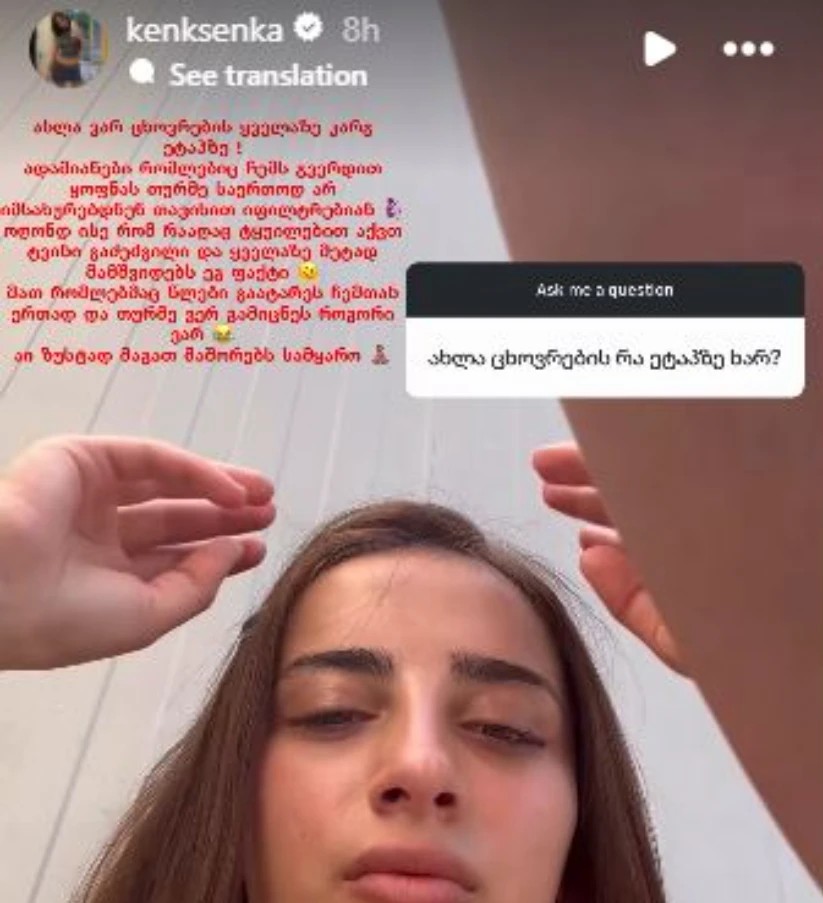 „ახლა ვარ ცხოვრების საუკეთესო ეტაპზე. ადამიანები, რომლებიც ჩემს გვერდით ყოფნას თურმე საერთოდ არ იმსახურებდნენ თავისით იფილტრებიან. ოღონდ ისე რომ ტვინი რაღაც ტყუილებით აქვთ გამოძეძგილი. ყველაზე მეტად მამშვიდებს ეგ ფაქტი. მათ, რომლებმაც წლები გაატარეს ჩემთან ერთად, თუმცა თურმე ვერ გამიცნეს როგორი ვარ. აი, ზუსტად მაგათ მაშორებს სამყარო“, – წერს მარიამ კეკუა.