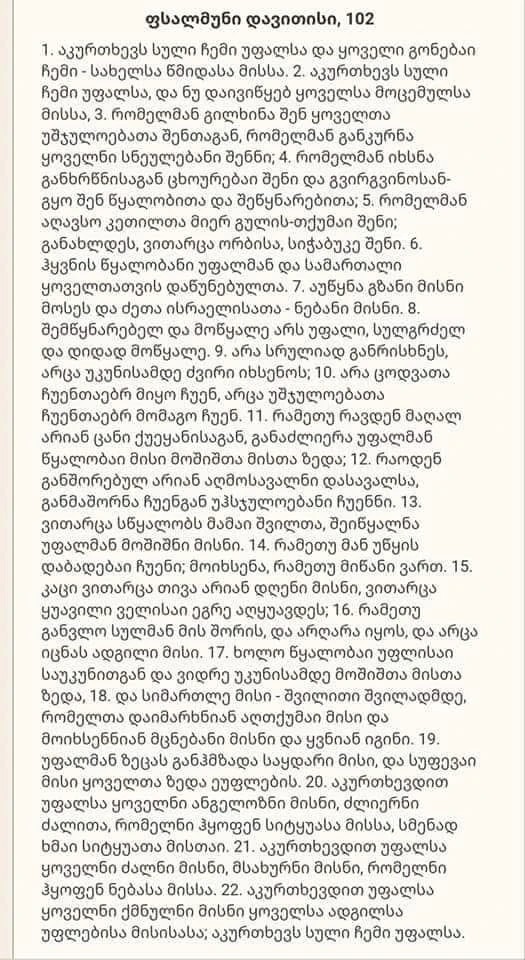 „ვთხოვ მრევლს, გააძლიერონ ლოცვა და, ყოველდღიური ლოცვების გარდა, დამატებით წაიკითხონ მე-3, 26-ე, 102-ე და 145-ე ფსალმუნები“ - ილია მეორე ( 27. 11. 2020)