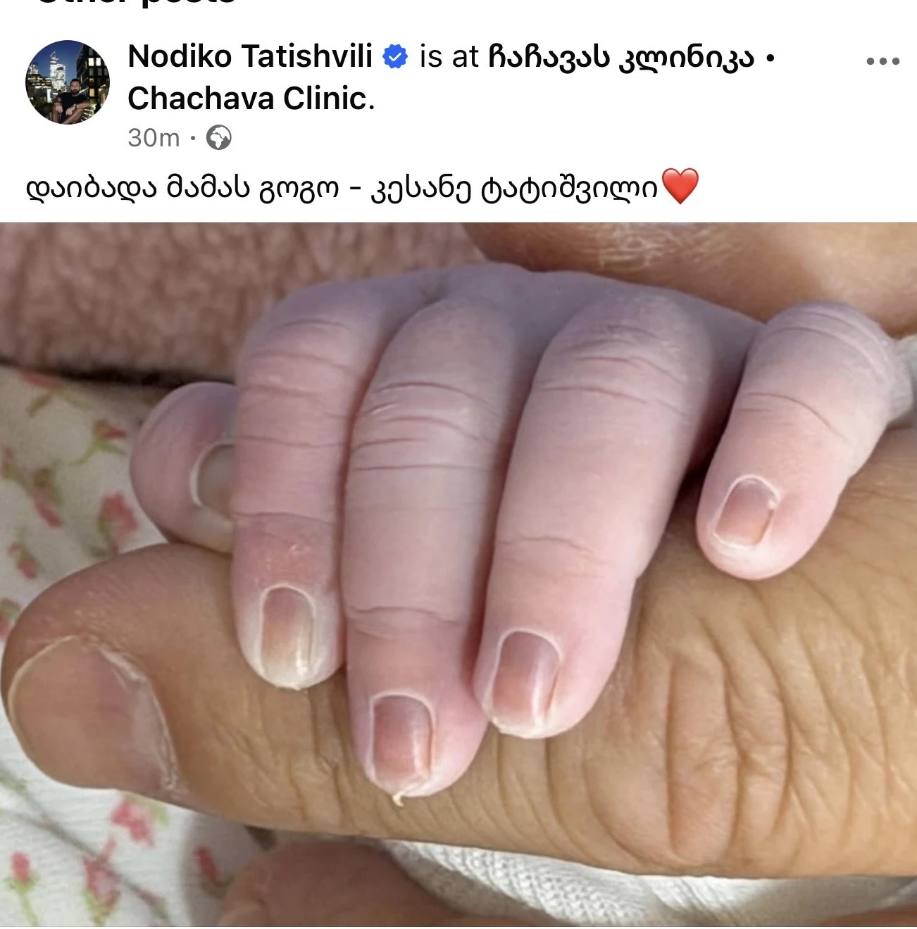 ,,დაიბადა მამას გოგო კესანე"-წერს ნოდიკო და უამრავ მილოცვას იღებს.