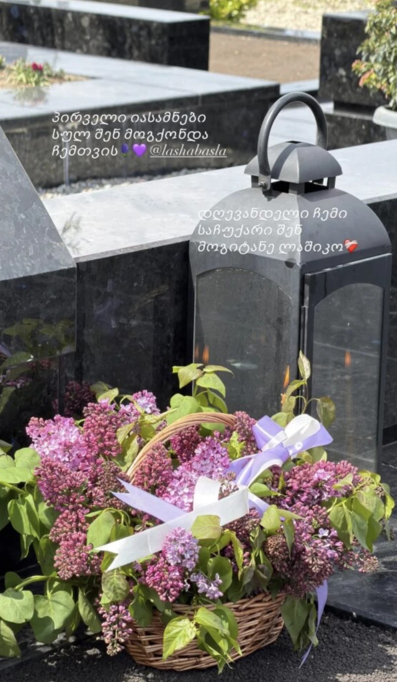 მომღერალმა თავისი გარდაცვლილი მეუღლის, ლაშა ბასლანძის საფლავზე პირველი იასამნები მიიტანა.