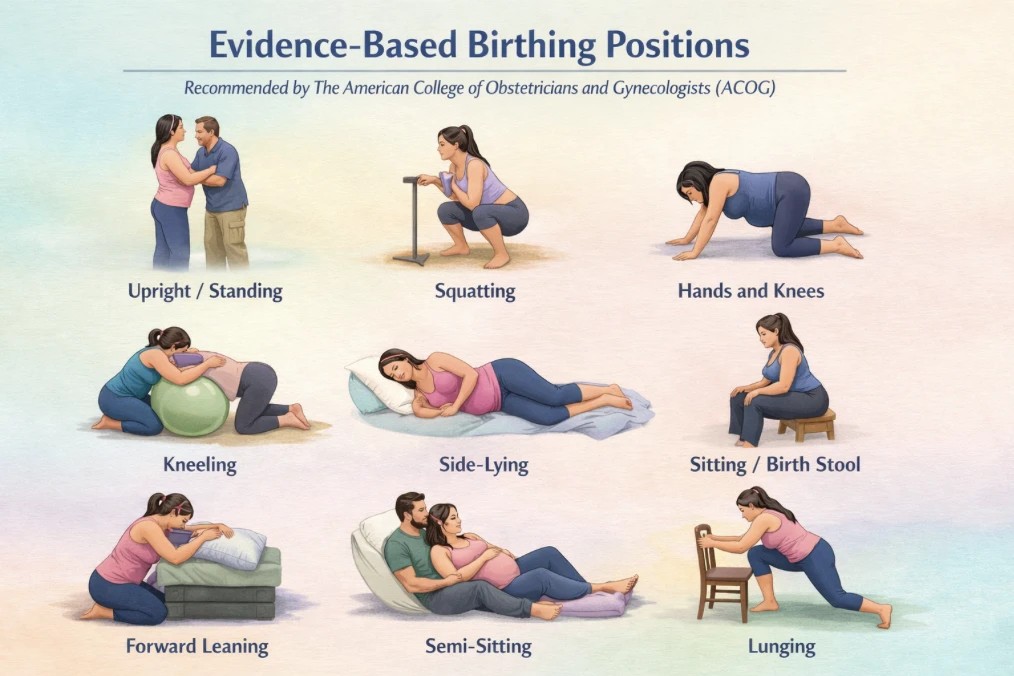 მტკიცებულებებზე დაყრდნობილი სამშობიარო პოზიციები (წყარო: ACOG და კვლევები)