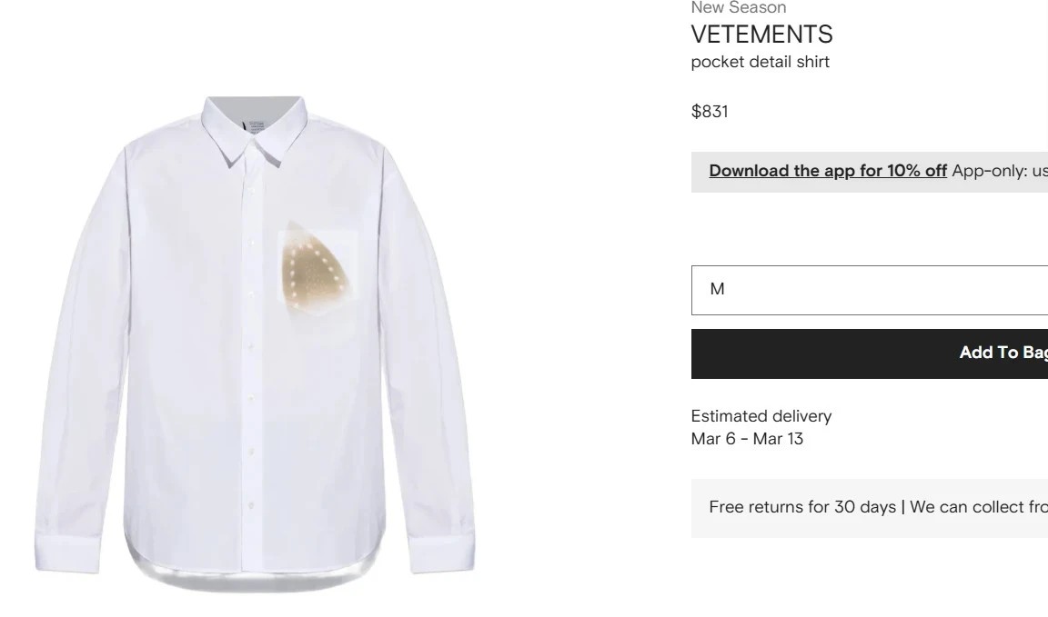 ბრენდმა VETEMENTS 2026 წლის ახალ კოლექცია წარადგინა. ყურადღების ცენტრში მოექცა თეთრი პერანგი, რომელსაც თითქოს უთო პირდაპირ მიეწვეს ზედ.
