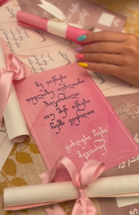 სასიამოვნო სიახლე სალომემ გამომწერებს ამცნო. ის ვიდეოს აქვეყნებს, სადაც ჩანს, როგორ ამზადებს ის საქორწინო მოსაწვევებს.