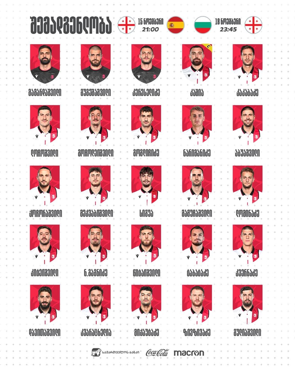 საქართველოს საფეხბურთო ნაკრები 15 ოქტომბერს ესპანეთს უმასპინძლებს, ხოლო 18-ში – ბულგარეთში ითამაშებს. ამ მატჩებით ჩვენი გუნდი მსოფლიო ჩემპიონატის შესარჩევ ეტაპს დაასრულებს.