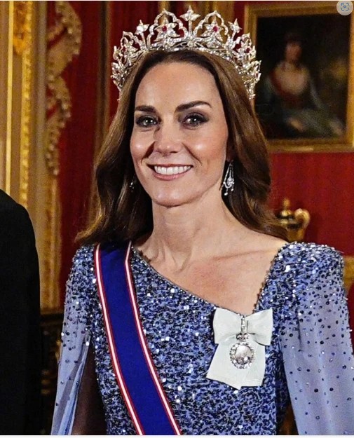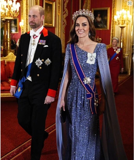 43 წლის ქეით მიდლტონი ბანკეტზე ბრჭყვიალა კაბითა და „ჯენი პეკჰამის“ მოსასხამით გამოჩნდა, თუმცა ყველაზე დიდი ყურადღება დედოფალ ვიქტორიას კოლექციიდან იშვიათმა დიადემამ მიიპყრო.