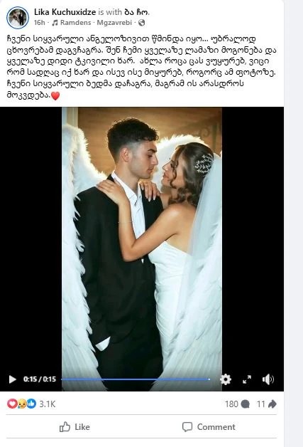 „ჩვენი სიყვარული ბედმა დაჩაგრა, მაგრამ ის არასდროს მოკვდება" - ლიკა კუჭუხიძის ემოციური პოსტი გარდაცვლილ მეუღლეზე