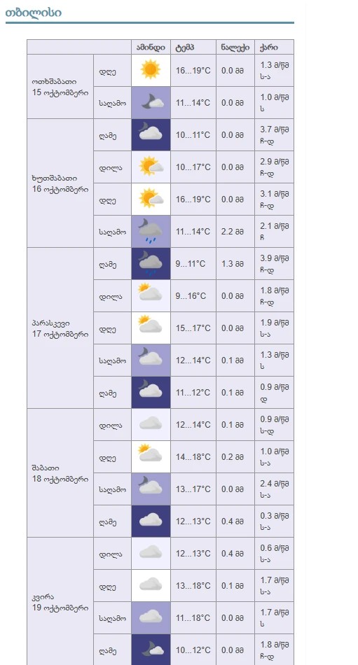 ჰაერის ტემპერატურა, დღის საათებში +17 +18 გრადუსი იქნება.