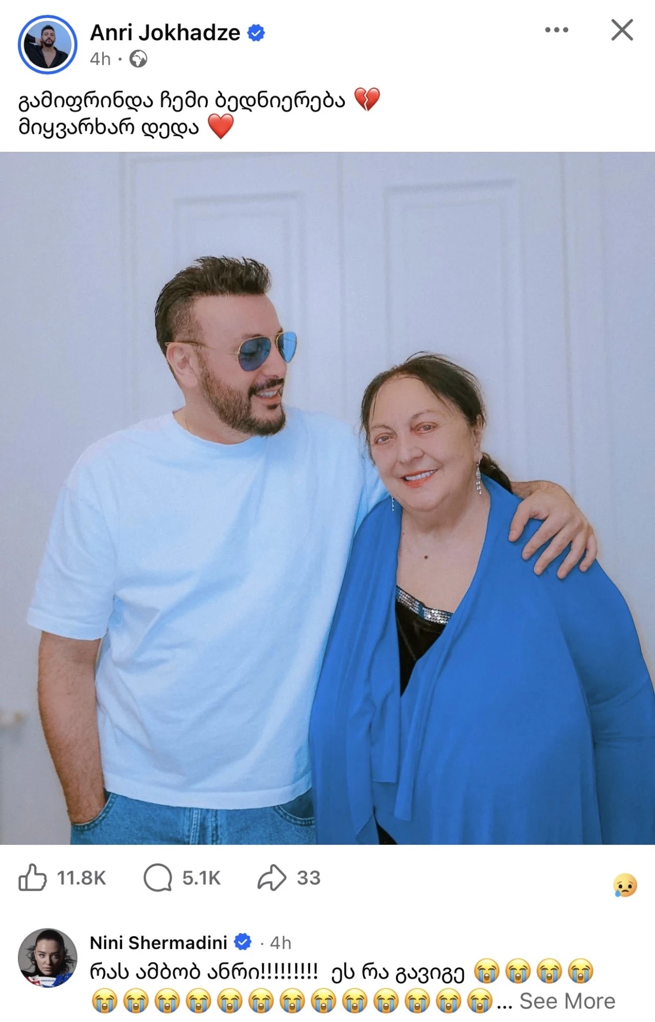 ,,გამიფრინდა ჩემი ბედნიერება. მიყვარხარ დედა"-წერს ანრი.